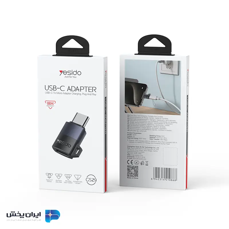 تبدیل میکرو micro usb به تایپ سی یسیدو مدل yesido gs29