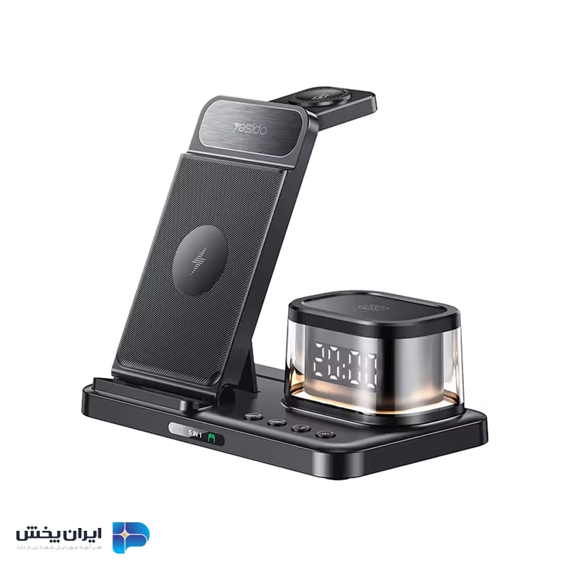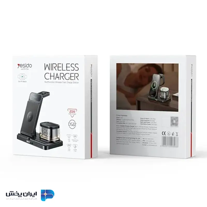 شارژر وایرلس یسیدو مدل Yesido DS22 یک دستگاه چندمنظوره است که با طراحی هوشمندانه خود امکان شارژ همزمان چندین دستگاه را فراهم میکند. این دستگاه از فناوری Qi Wireless Charging برای شارژ گوشیهای هوشمند با توان حداکثر ۱۵ وات، ساعتهای هوشمند با توان حداکثر ۳ وات و هدفونها با توان ۲.۵ وات پشتیبانی میکند. علاوه بر این، این محصول بهعنوان یک چراغ شب LED و ساعت دیجیتال عمل میکند و طراحی تاشو آن به شما اجازه میدهد فضای کمی را اشغال کند. قیمت عمده شارژر بی سیم بهعنوان یک لوازم جانبی همهکاره برای محیطهای کار و منزل،بسیار مقرون به صرفه است. این محصول علاوه بر شارژ، فضای مرتب و نور مناسب را نیز فراهم میآورد.