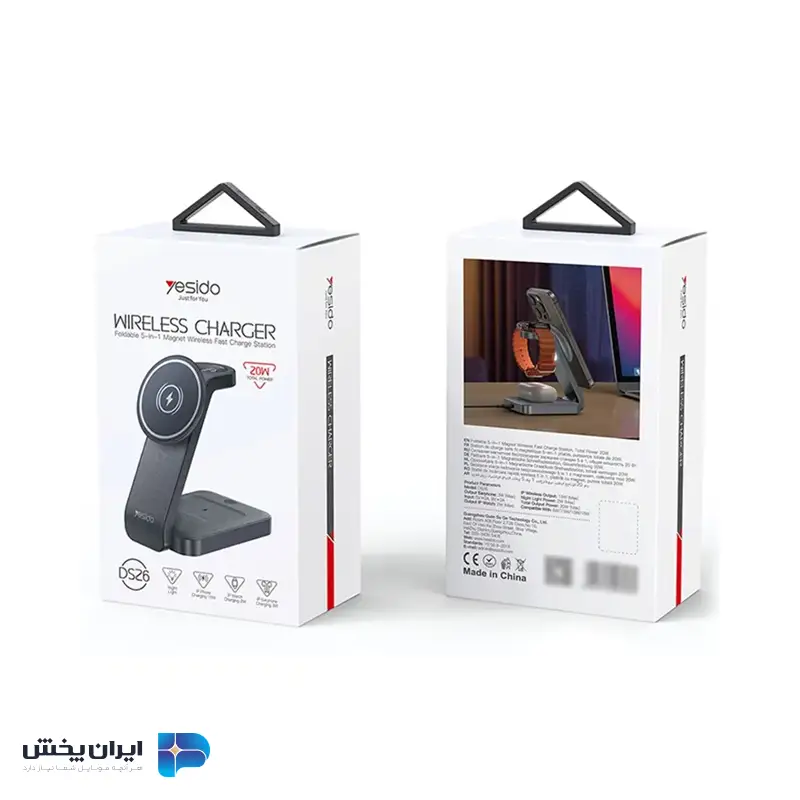 شارژر وایرلس یسیدو مدل Yesido DS26 یک استند شارژ چندمنظوره است که با طراحی تاشو و قابلیت شارژ همزمان چند دستگاه، تجربهای کارآمد و منظم را برای کاربران فراهم میکند. این دستگاه از فناوری شارژ سریع بیسیم با توان حداکثر ۱۵ وات پشتیبانی میکند و مناسب برای گوشیهای هوشمند، ساعتهای هوشمند و هدفونهای بیسیم است. علاوه بر این، دارای چراغ شب LED با توان ۲ وات است. خرید شارژر موبایل با طراحی جمعوجور برای استفاده در فضاهای کوچک بسیار مناسب میباشد.