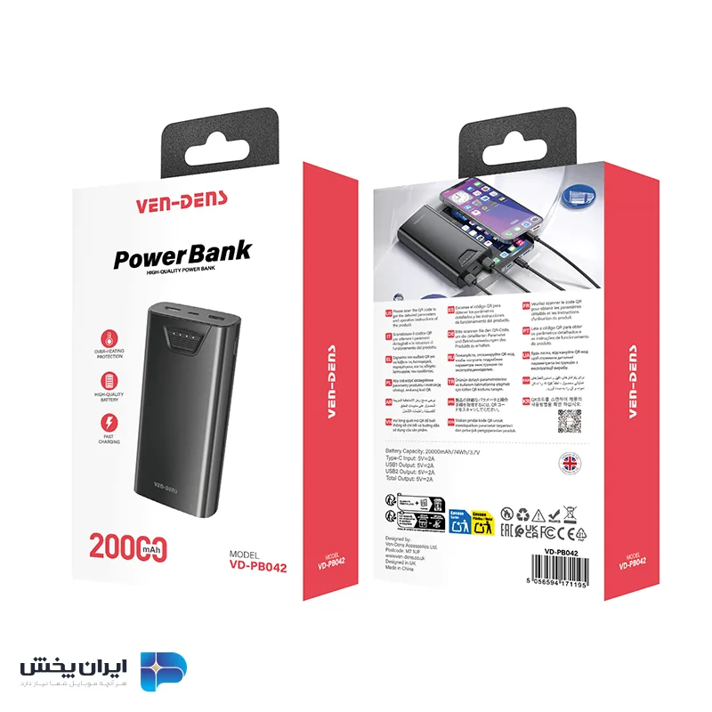 پاوربانک وندنزvendens مدل vd-pb042 با ظرفیت ۲۰۰۰۰ میلی‌آمپر، یک همراه قدرتمند برای شارژ گوشی موبایل، تبلت و سایر گجت‌هاست. این پاوربانک با دو پورت خروجی USB امکان شارژ هم‌زمان دو دستگاه را فراهم می‌کند و با فناوری محافظت هوشمند (Smart IC) از دستگاه‌ها در برابر نوسانات ولتاژ، اتصال کوتاه و حرارت بالا محافظت می‌کند. این مدل با طراحی جمع‌وجور، نشانگر LED و باتری پلیمری باکیفیت، گزینه‌ای مناسب برای سفر، استفاده روزمره و شرایط اضطراری است. همچنین ورودی Type-C آن سرعت شارژ بالاتری را برای پاوربانک فراهم می‌کند. اگر به دنبال یک پاوربانک قدرتمند، ایمن و کاربردی هستید، مدل VEN-DENS VD-PB042 یکی از بهترین گزینه‌هاست. ظرفیت ۲۰۰۰۰ میلی‌آمپر آن، شارژدهی چندباره برای گوشی و تبلت را تضمین می‌کند و با داشتن دو پورت خروجی، امکان شارژ هم‌زمان چند دستگاه را به شما می‌دهد.